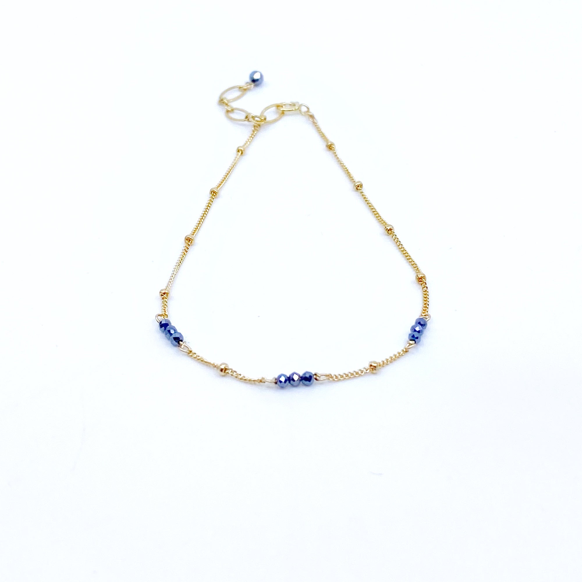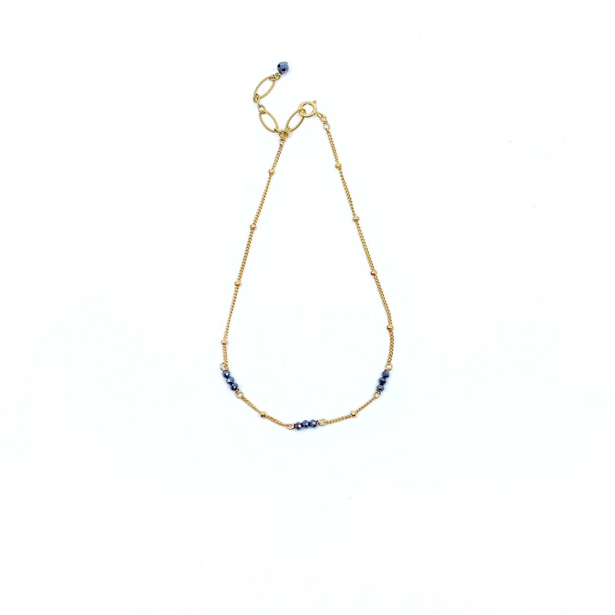 Этот браслет ручной работы с изысканной цепочкой-сателлитом, наплавленной золотом, и огранённым терагерцовым камнем добавит элегантности любому образу....