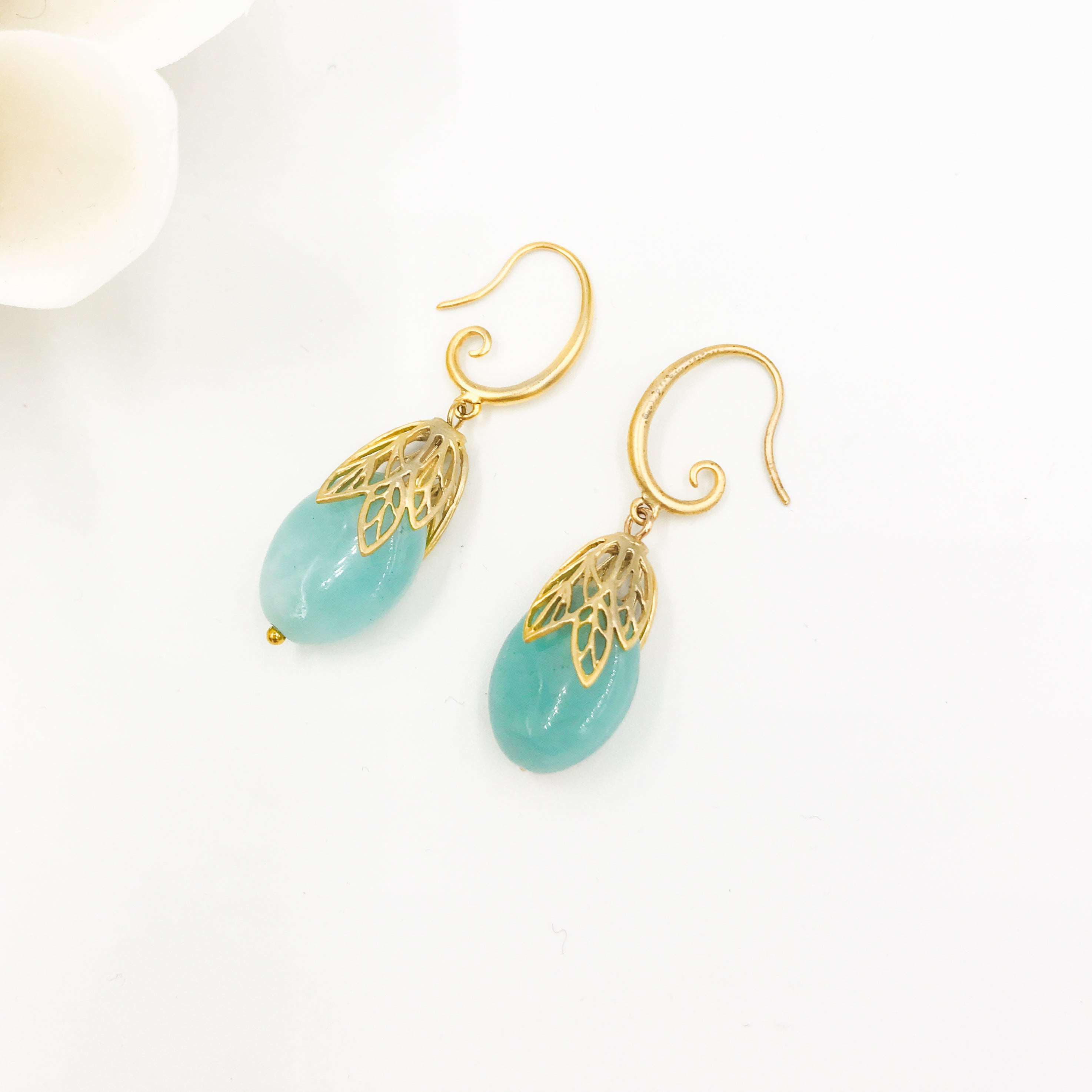 Вдохновленные безмятежной красотой природы и лесов Божественной Земли, эти серьги воплощают в себе суть лесной элегантности. Позолоченная серебряная швенза и изящная золотая фольга подчёркивают натуральный амазонит, создавая гармоничное сочетание роскоши и природы.