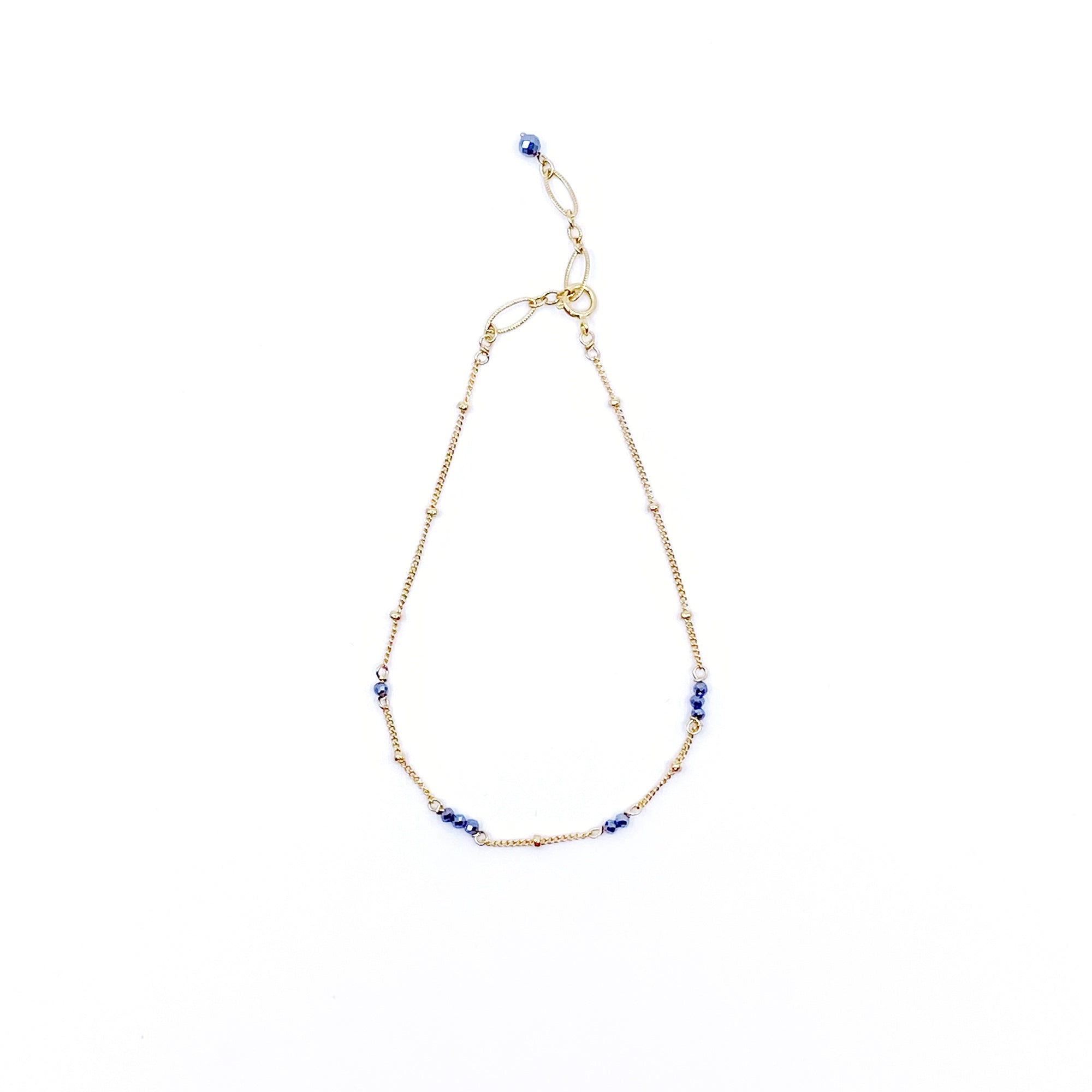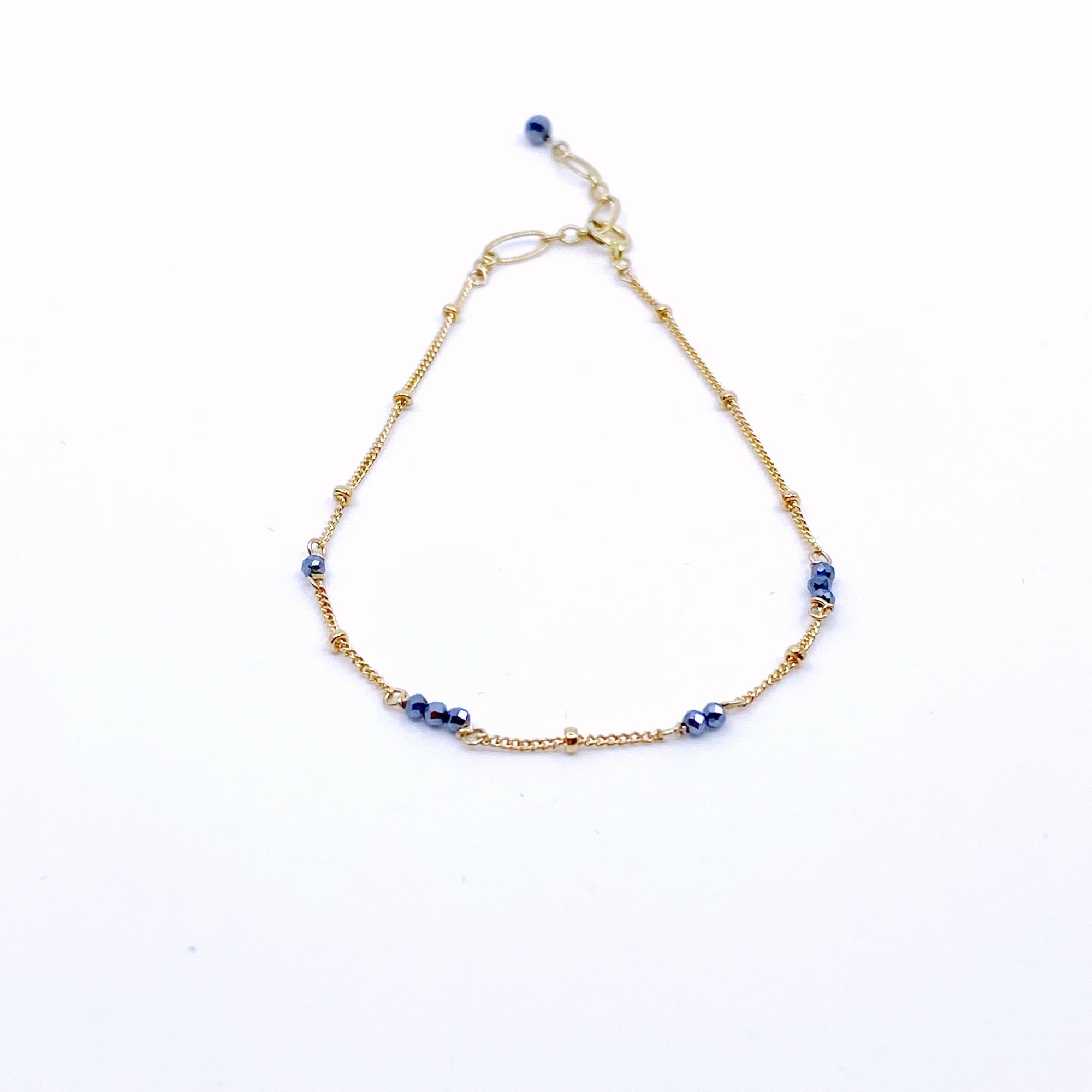 Этот браслет ручной работы с изысканной цепочкой-сателлитом, наплавленной золотом, и огранённым терагерцовым камнем добавит элегантности любому образу....